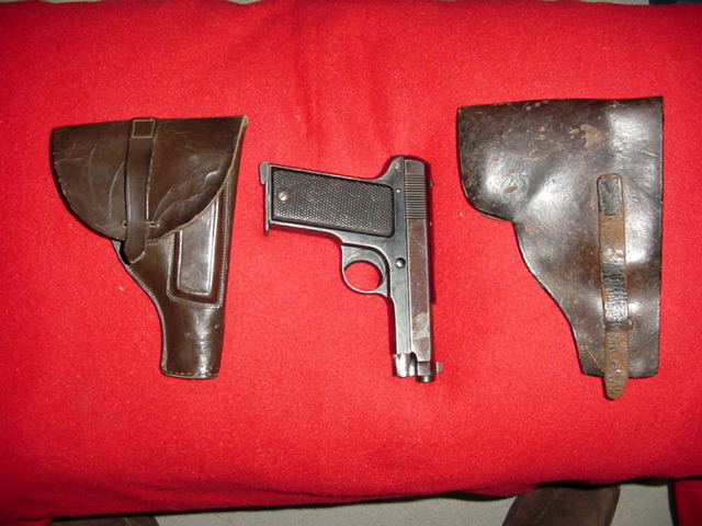Problem: riuscite ad individuare l'arma che va nella fondina di sinistra, sicuramente di fattura italiana, con il tipico cuoio cartonato di metà*/fine guerra? A destra, per comparazione, quella di una '34.