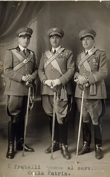 Lo Zio al centro era ufficiale dei Bersaglieri, durante la Seconda guerra Mondiale, era istruttore alla Scuola del Genio di Civitavecchia. (Un tipo dinamico, a settantadue anni, in piscina, si tuffava ancora dal trampolino).