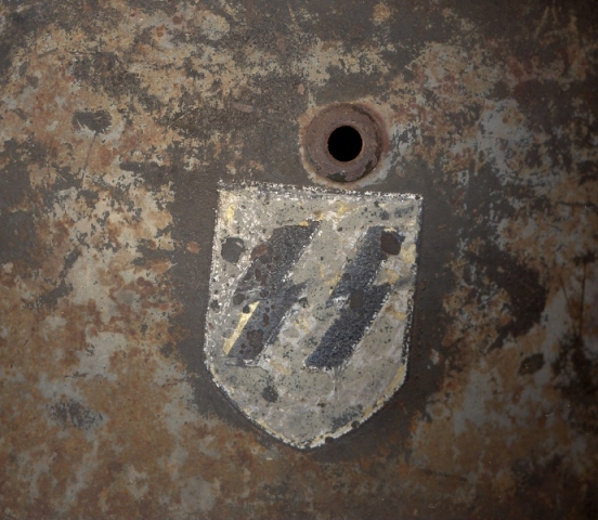 elmo curioso, la decal di partito è molto convincente, tanto da sembrarmi, stando alle foto, buona. quella delle SS invece è indubbiamente un pastrocchio...posizionata errata (nelle SS, a differenza della wehrmacht, non avrebbero mai distribuito un elmetto con decal così disassata), con misure quantomeno sospette ed evidenti segni di "ritocco" (ad esempio il bianco del fondo che riempie anche i buchi delle scrostature).