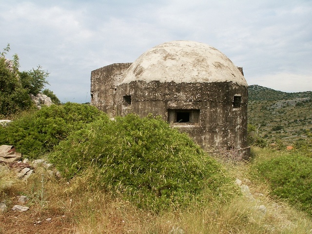 i fortini sono probabilmente italiani, visto il loro "disegno", ma non sono stati fatti durante il ventennio, perche la Goli allora aparteneva alla Jugoslavia. Pero, durante l' ocupazione italiana nel 1941/43, erano costruiti tanti bunker lungo la costa Dalmata - per me, l' esempio migliore e' la citta di Sebenico/Sibenik, che era stata "chiusa" con una cinta di bunker (decine e decine), come questo: