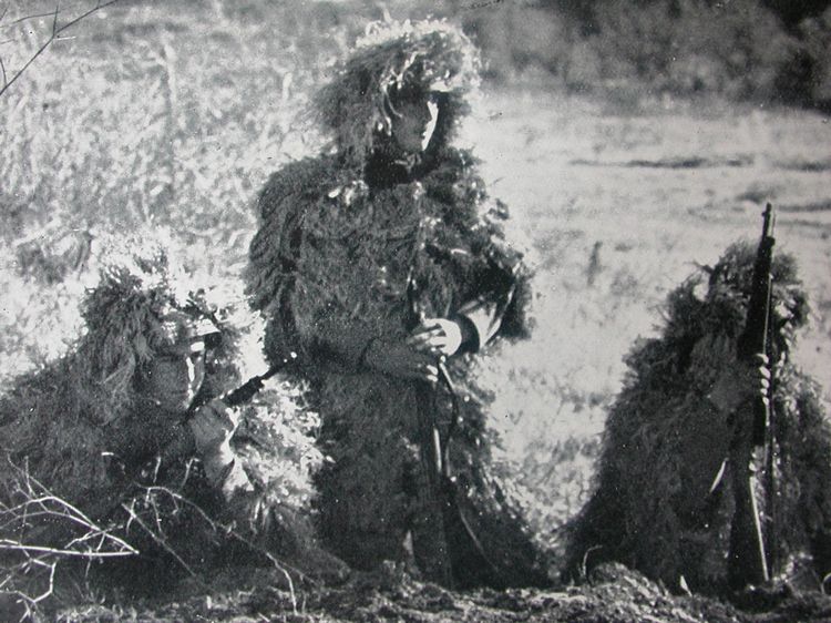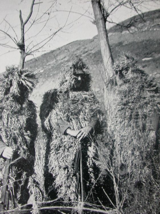 La didascalia dice:"Ardite ed invisibili pattuglie esploranti spiano e colpiscono in profondita' il nemico prima dell'assalto travolgente"