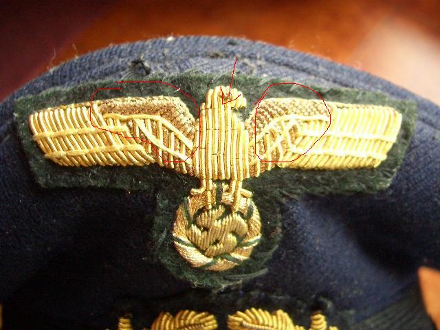 Nella foto le parti evidenziate in rosso sono in metallo (filo di canutiglia?)...mentre quella corretta è tutta in stoffa?...Inoltre c'è differenza tra aquilla da sott.uffle e uff.le?