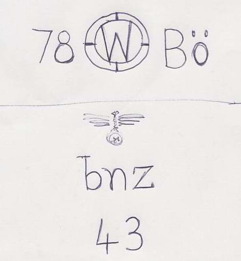 il 78 ha a che fare col lotto o periodo di produzione della canna , il W cerchiato e' il marchio del produttore (sconosciuto) e Bo e' la sigla del produttore dell'acciaio ( la ditta Boeler , tra l'altro austriaca come la bnz/Steyr , produttrice del k98 . Quest'ultima cosa non e' casuale , sono evidenti le motivazioni logistiche di una simile accoppiata).