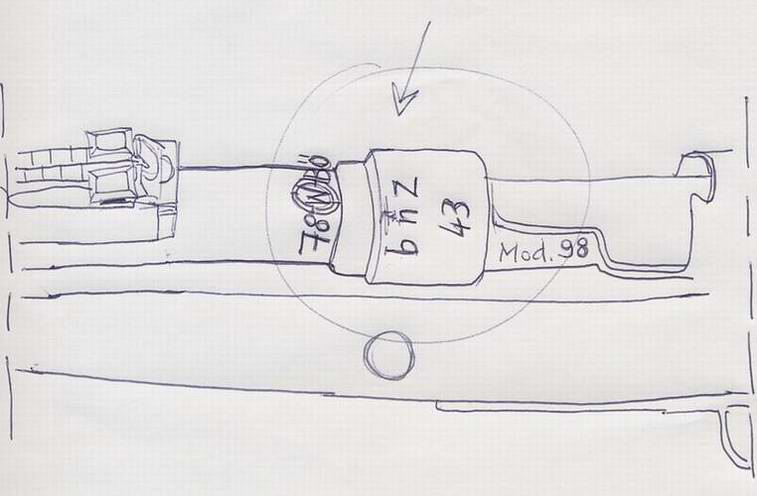 Purtroppo non sono un gran disegnatore comunque a memoria mi pare fossero uno sulla canna e l'altro sulla camera di scoppio più o meno così. Ripeto mi incuriosiva il doppio cerchio con la W e mi chiedevo se avesse nulla a che fare coi cecchini o roba del genere. Ciao