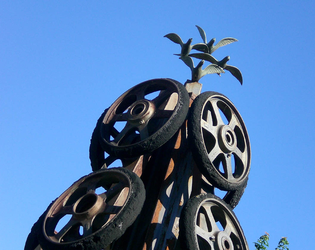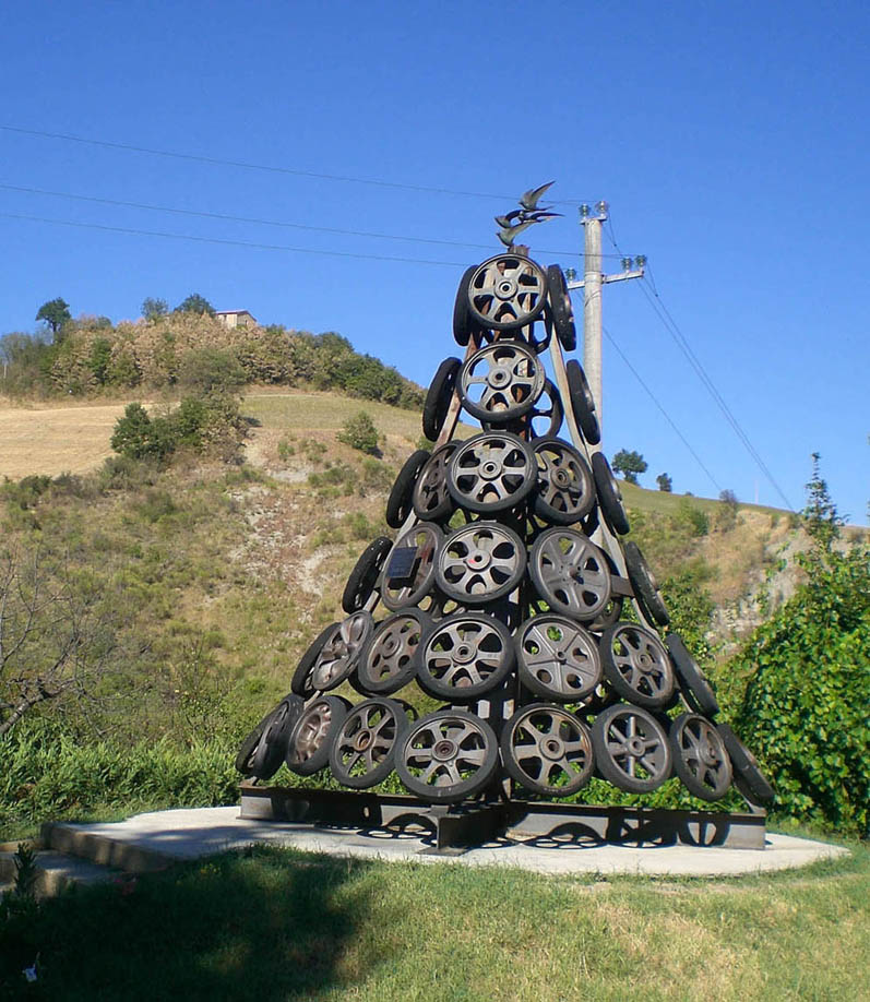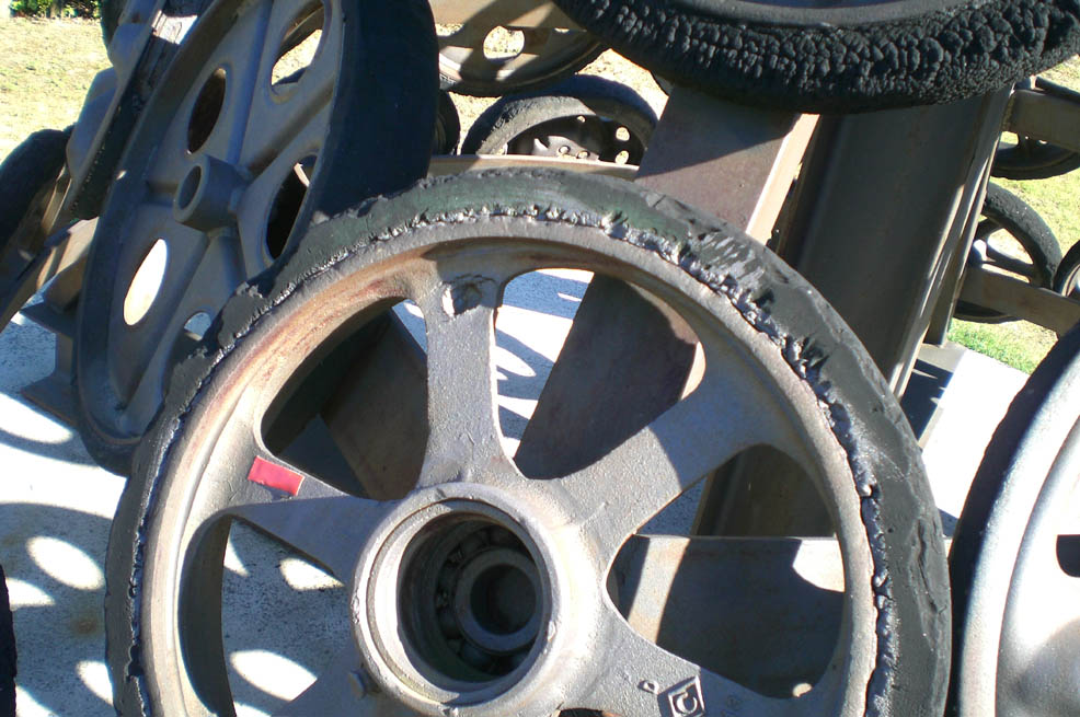 questo il monumento a Cisinina in una foto di dettaglio si vede il foro di un colpo arrivato sulla ruota gommata di un carro leggero bren