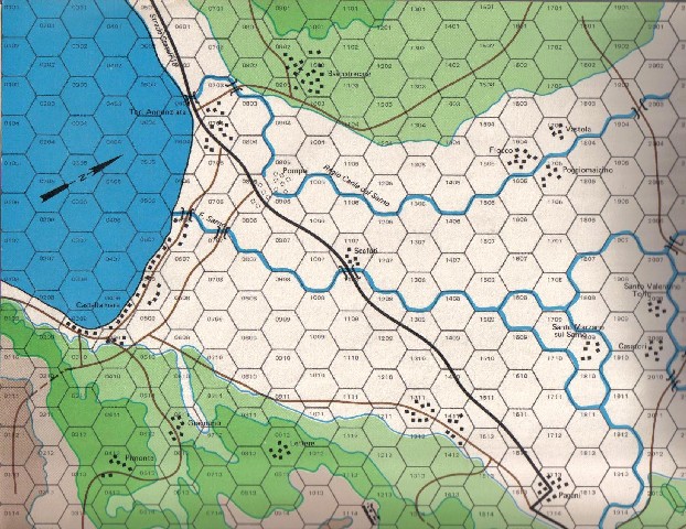 Inizio con un esempio relativo ad un wargame degli anni settanta edito dalla GDW (Games Designers Workshop) dal titolo Avalanche "Salerno landings" copre a livello di plotone i combattimenti del settembre 43 con vari scenari (gioco campagna, gli sbrachi solamente o dal contrattacco germanico) un esagono equivale a circa 400 metri reali.