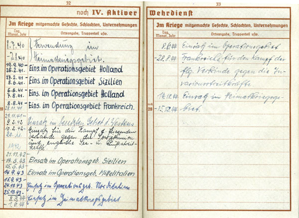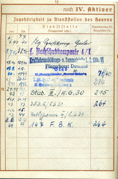 Qui l`unità* il 15.10.40 è rinominata III./KG30. Sul libretto è annotato il cambiamento del nome.