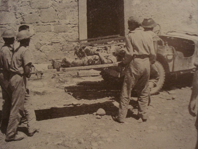 Anghiari: un ferito viene caricato su di una jeep.