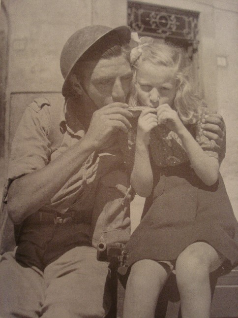Duetto d'armonica: per molti Italiani ( dove le zone sono già* state liberate ) la guerra è finita.