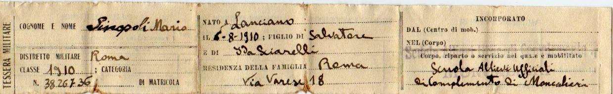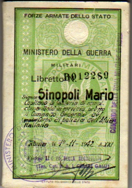 Ma sono riuscito a prendere il suo piastrino che è rimasto tale dalla scuola ufficiali fino al 45, insieme al libretto per i viaggi in treno.