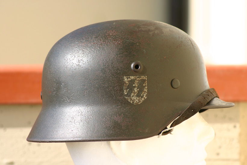 Purtroppo la decal non mi piace.E´ una vecchia riproduzione Italiana che cerca di imitare una Pocher.Oltretutto, strano trovarla su un elmo marcato Q.