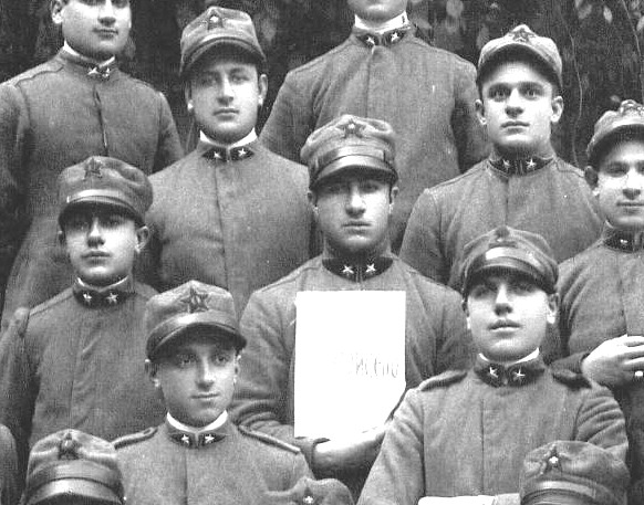 Vi appaiono militari con stellone sul berretto, alcuni con numero alcuni con tondino a croce, alcuni hanno fregio di artiglieria.