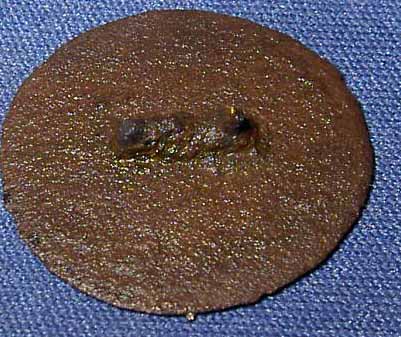 il bottone con ancora , la parte brillante è quel che rimane della patina supeficiale..