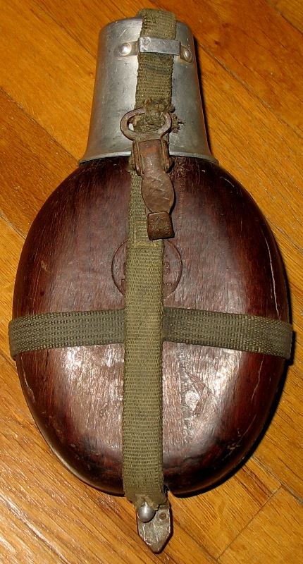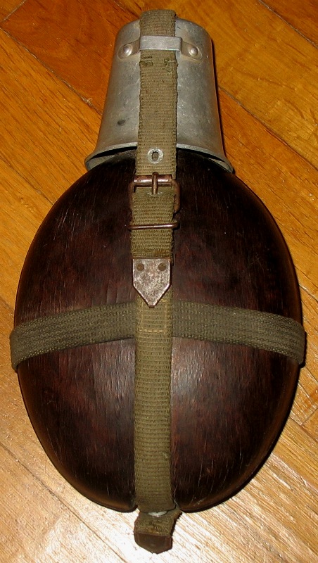 Coloniale cinghie verdi,anno 42,chiusura con occhielli come con la pelle e boccale anomalo,che non conosco,ma che non bollo per falso fino a prova contraria.Il tutto ad un prezzo irrisorio: