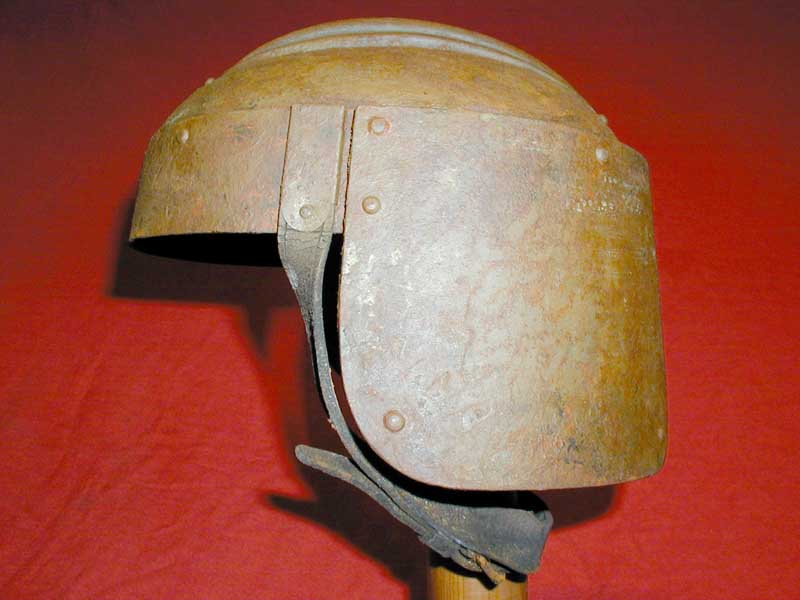 si [] ho trovato una foto cartacea... L'elmo ha TRE rivetti, come pure l'elmetto che li mantiene anche se ha l'aerazione...