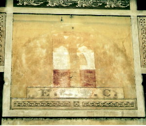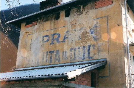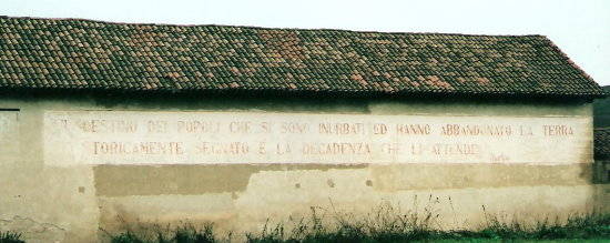 serie di immagini del Duce su una cascina all'ingresso di Vercelli