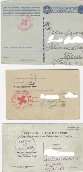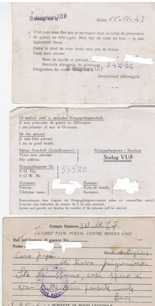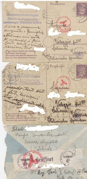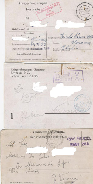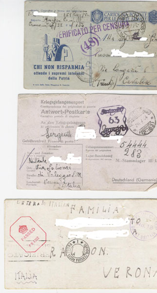 Sperando di fare cosa gradita vi posto una piccolissima parte della mia raccolta.Quelle provenienti dai campi di concentramento avevano poche righe scritte a causa della censura, alcune avevano già* tutto prestampato. Da quelle poche parole che iniziavano con i saluti e terminavano con "sto bene non pensate male di me" immaginate quanto il soldato cercava di tranquillizzare casa in particolar modo quelli nei stalag.Ho cancellato per delicatezza e rispetto i nomi e ho evitato quanto più possibile di scannare il retro.Vi posto anche altre cosucce.Spero che si vedano bene perchè per rispettare il peso le ho ridotte.[ciao2]