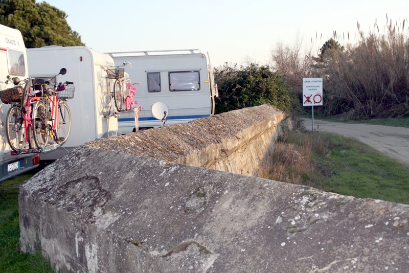 Nell'ultima foto del gruppo precedente, potete notare il muro antisbarco che parte dal bunker e procede tangente alla costruzione, più avanti il muro è stato demolito x una decina di metri x accedere all'arenile