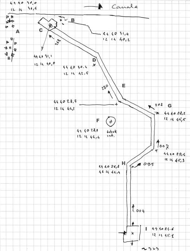 Posto questo mio schizzo rilevato sul campo che ritengo possa essere di aiuto all'interpretazione delle foto, specie dell'ultima parte.