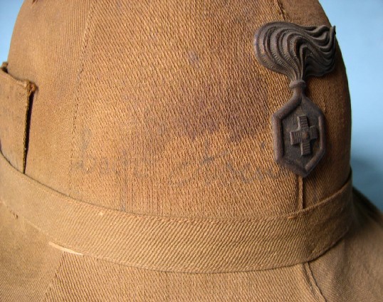 Il secondo è da truppa e sicuramente ha visto il sole africano, tracce evidenti di sudore e il colore verde sbiadito ne sono la prova. Questo casco non è mai stato fregiato e avvalora la tesi che non tutti lo fossero. Chiedo scusa se per gioco ho appuntato un fregio...ma è proprio bellino