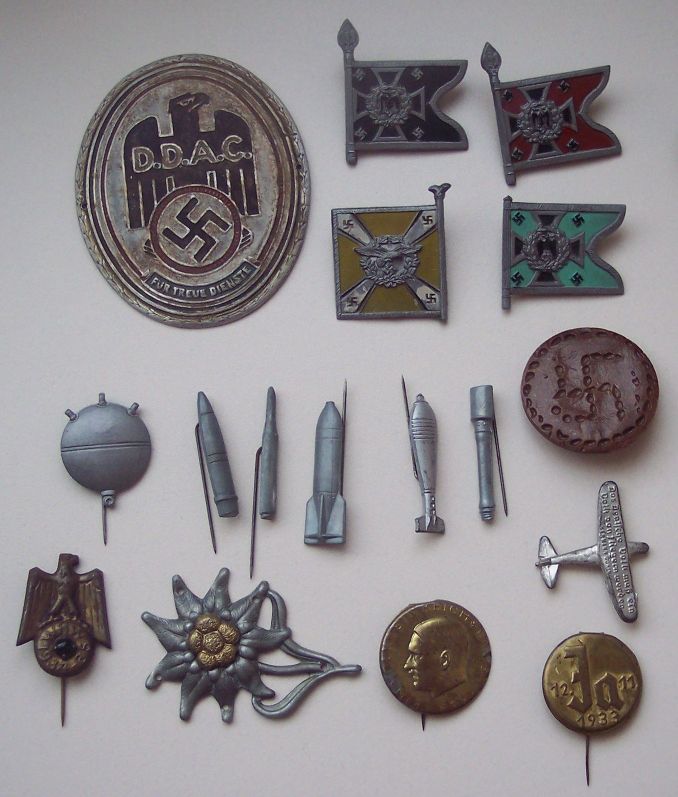 la spilletta con Adolf è una WHW e ce ne sono mi pare 2.Una color argento e una ottone.