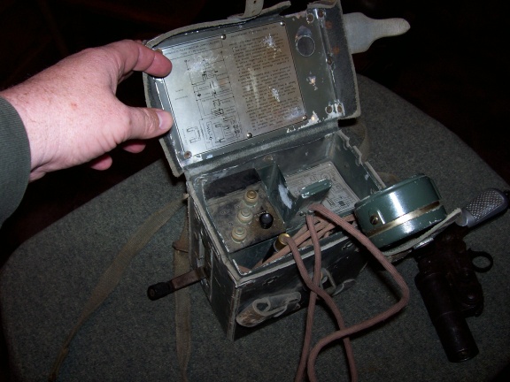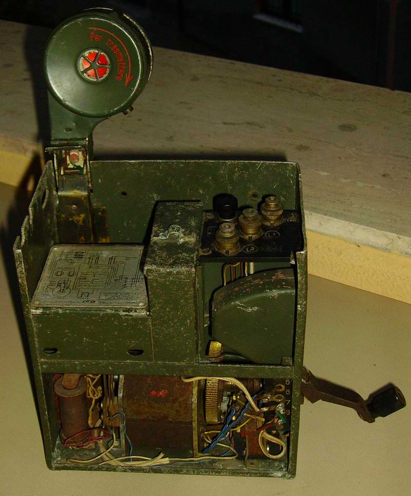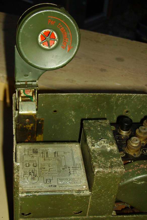 Deve avere sull'impugnatura un pulsante per scollegare la suoneria e collegare il telefono.Praticamente quello che noi a casa facciamo alzando la cornetta.Semplice ma forse in guerra era più sicuro così.