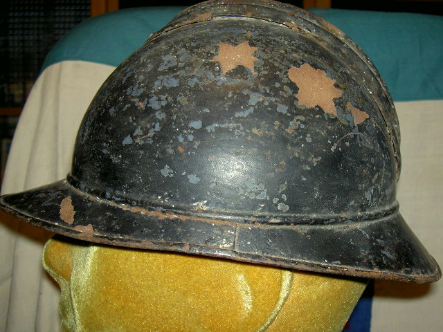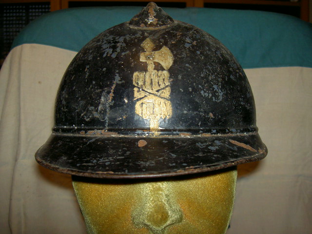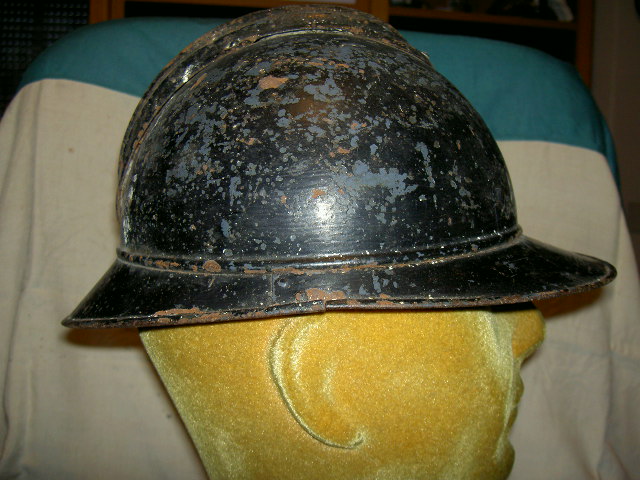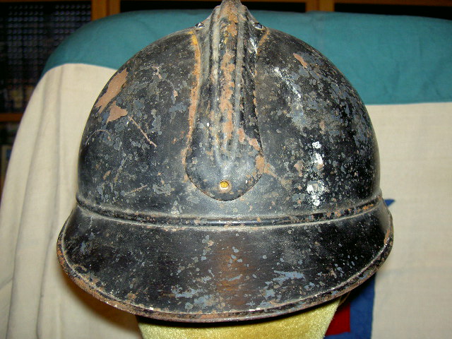 Ultimo arrivato dalla provincia di Salerno, un bell'elmo adrian di produzione francese, sotto il nero si vede il bleu orizon ed ha i due fori frontali per il fregio dell'arma.