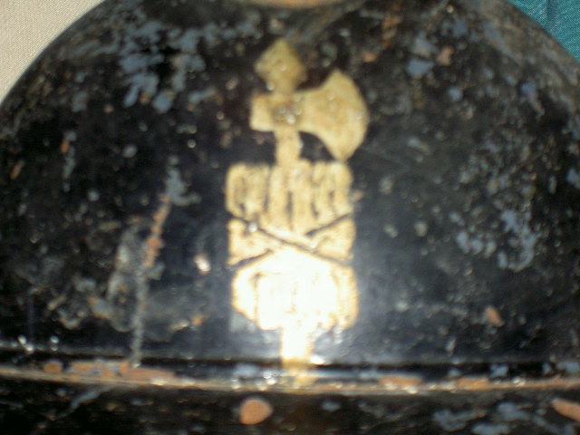 I buchi dove andava il fregio sono stati saldati per fregiare l'elmo con un bellissimo fascio littorio dorato.
