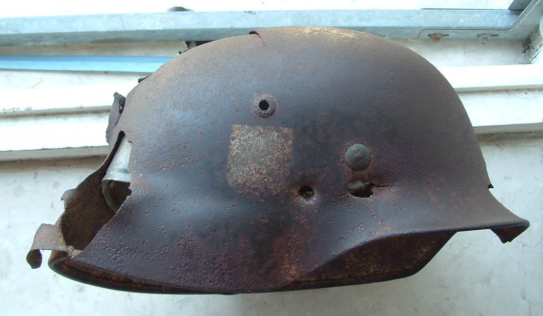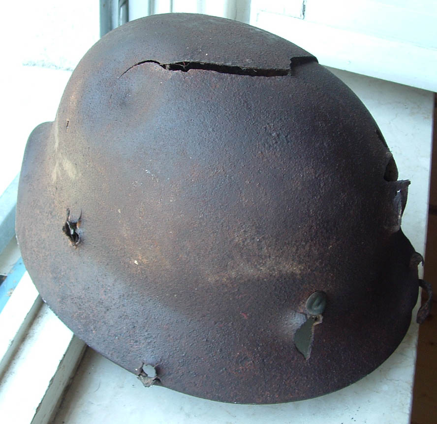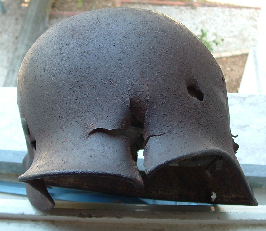 ero piccolo quando il papà* sub di un mio amico ci portò un elmetto inglese ritrovato su un Lct a largo di Anzio.. oltre all'evidente buco da scheggia questo riportava incastonato nelle incrostazioni marine parte dell'osso temporale del poveraccio!