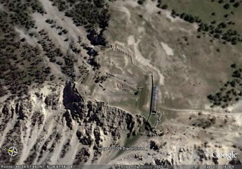 -Armamento Batteria Jafferau: 8 cannoni da 149 disposti in piazzole, quota 2800 m.