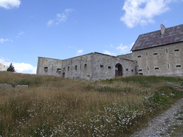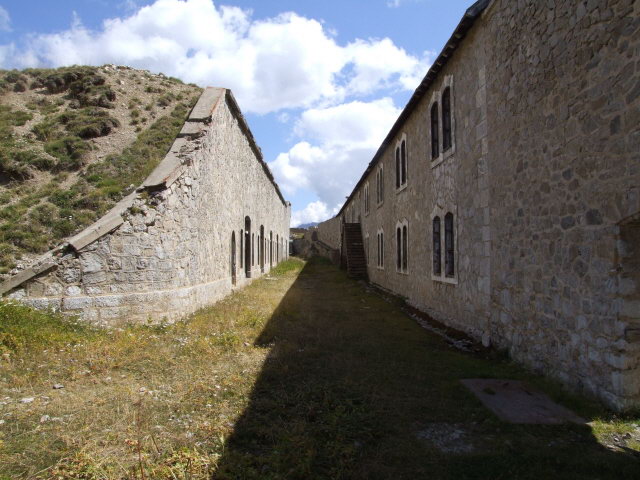 Dell' opera colpisce il colore giallastro e la dimensione della caserma principale su due piani e munita di feritoie. Lungo le mura sono visibili i segni lasciati dal bombardamento italiano.