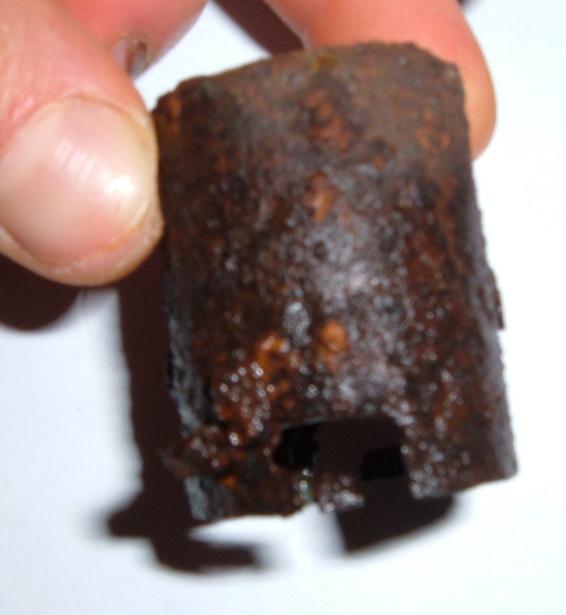 il tappo in questione presenta due codoli in ferro: uno esterno in vicinanza dell'incastro ed uno interno che sporge leggermente nella parte superiore del tappo stesso.