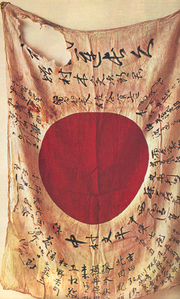 La bandiera con il Sol Levante e le preghiere scintoiste