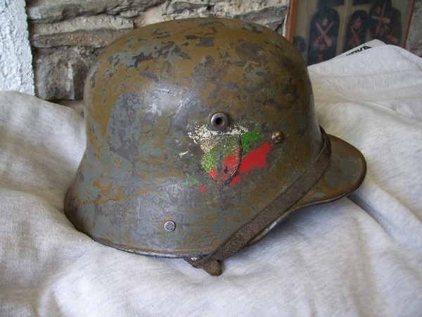 Questo secondo elmetto aveva anche il suo scudettino tricolore bulgaro, ma ne sono rimasti solo dei microscopici frammenti, perché è stato grattato; mi auguro che non l'abbia fatto qualche idiota per far "risembrare" l'elmetto tedesco, sarebbe stata una sciocchezza, anche perche questi M16 bulgari non sono propriamente comuni e a buon mercato; uno simile al primo dei due lo vidi all'ultimo Novegro e chiesi quanto voleva il venditore; non ci crederete, ma mi chiese 900 euro.