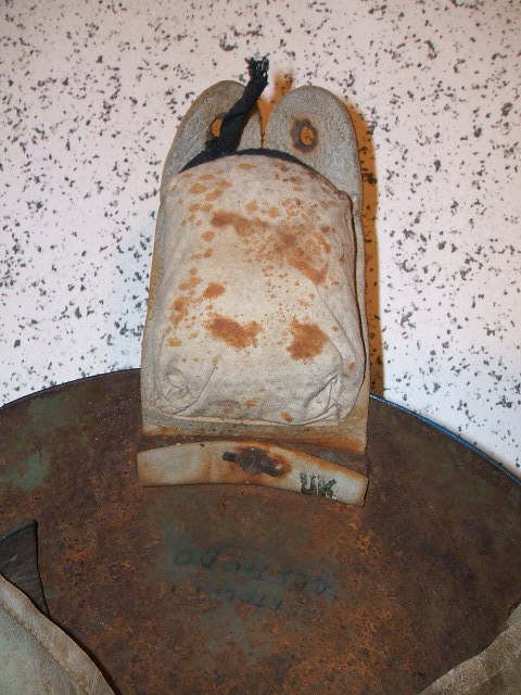 L'interno dell'elmo ancora ha il colore originario,i marchi