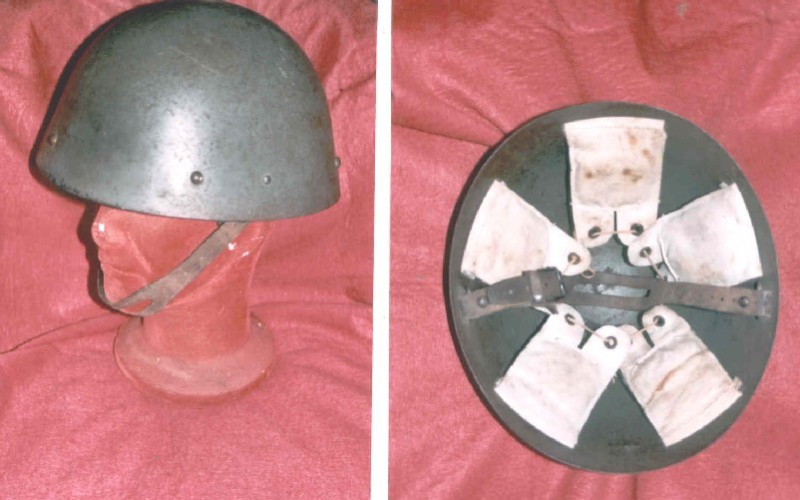 i marchi stampati sui lati dell'elmo ed il nome di un soldato