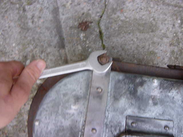 per smontare il portello tenuto con due dadi ho usato una chiave del 14, dopo aver ovviamente surriscaldato i dadi con la fiamma ossidrica, (questo è un replay per farvi capire