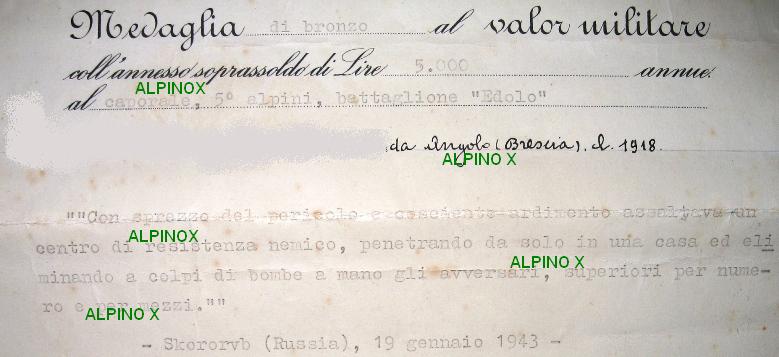 Questo è l'attestato della Medaglia di Bronzo al Valore Militare che mio nonno si guadagnò sul Fronte Russo, nell'abitato di Skororijb, durante il terzo giorno di ripiegamento...