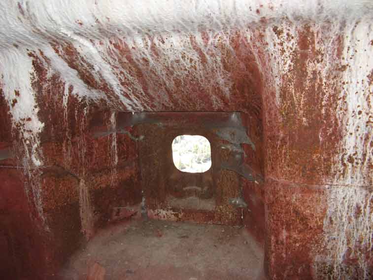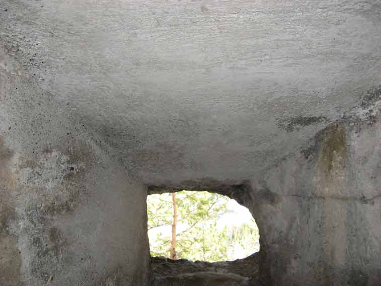 Torniamo indietro,e giunti al ricovero imbocchiamo la ripida scala che con circa 40 gradini ci porterà* alla diramazione(a sinistra) che conduca alla casamatta dell`arma A2,simile in tutto e per tutto alla postazione dell`arma A1.