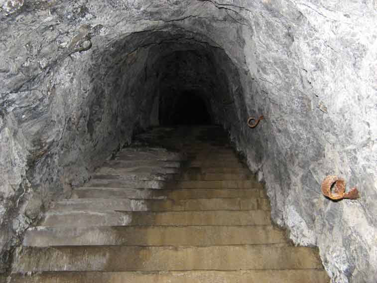 Il cunicolo che conduce all'ingresso attivo,dotato di porta-garitta