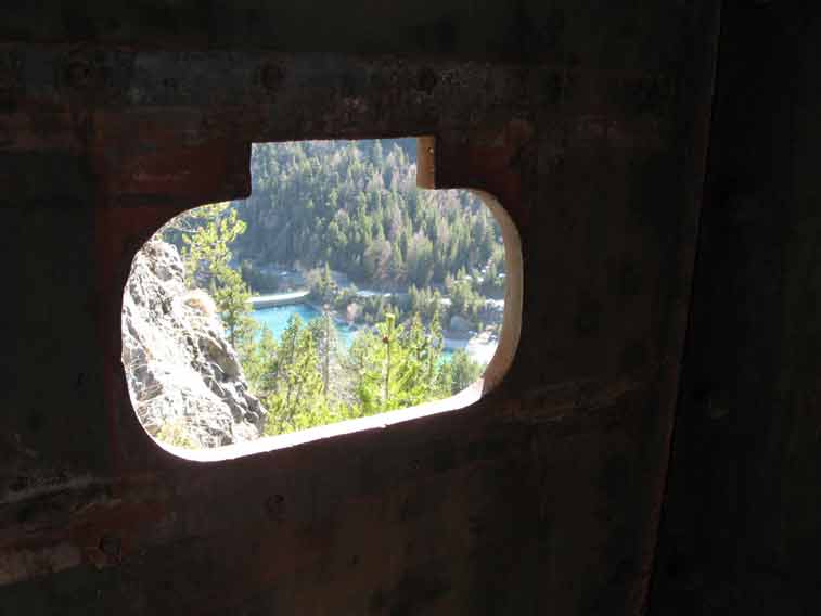 Il lago di 7 Fontane visto da una feritoia della porta-garitta