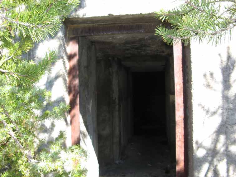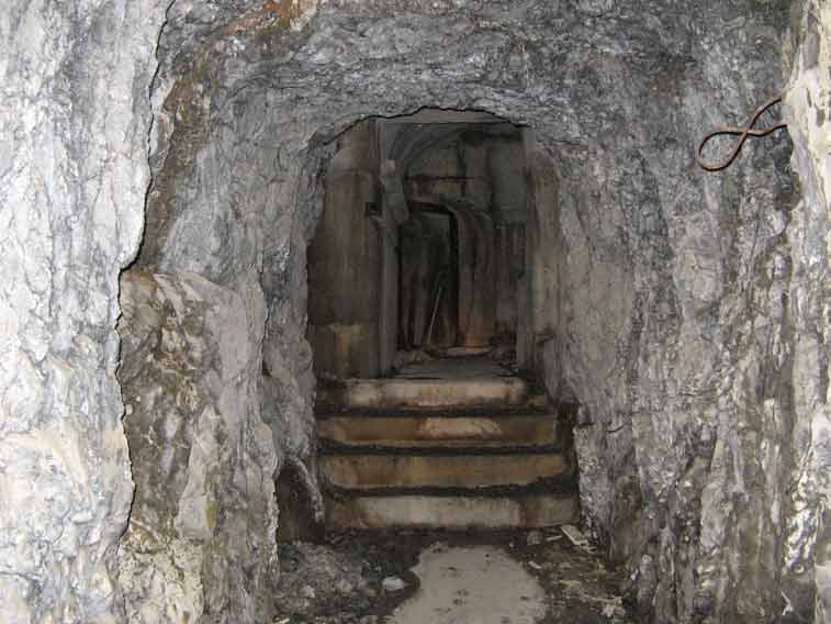 Tornati al corridoio principale svoltiamo nuovamente a sinistra e una prima rampa di scale con circa 40 gradini ci conduce a un pianerottolo privo di derivazioni,e proseguendo con altrettanti gradini giungiamo ad un tratto in piano,di fronte a noi un bivio:la derivazione a destra conduce all`uscita di sicurezza,quella sinistra dopo aver superato altri 10 gradini ci condurrà* all`interno del malloppo binato delle armi A3 e A4,queste ultime provviste della piastra corazzata di protezione in tre parti.A questo punto si torna indietro sino a giungere alla derivazione(la troveremo a destra) che conduce all`ingresso attivo,si percorre un corridoio e dopo aver lasciato a sinistra il locale delle latrine si raggiungerà* la porta-garitta dell`ingresso attivo.Adesso avendo visitato tutti i locali del Centro 39 si potrà* scegliere se scendere dal ghiaione di fronte a noi,piuttosto impervio(sconsigliato)oppure ritornare all`ingresso principale e scendere con comodo sentiero.