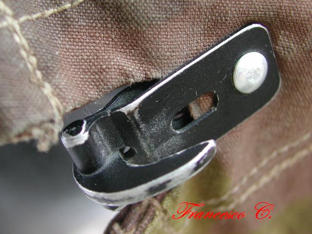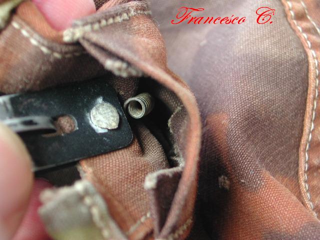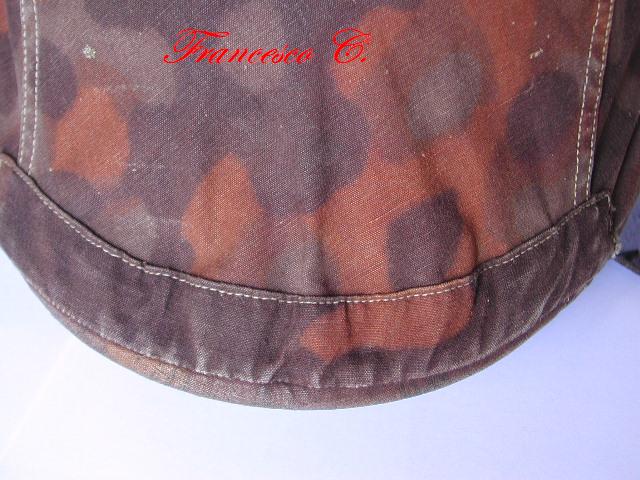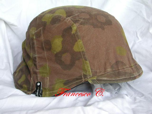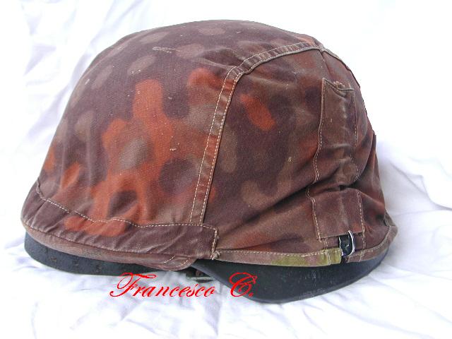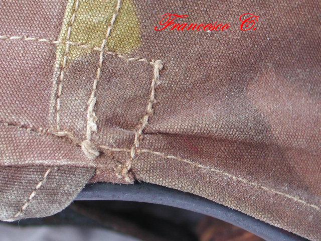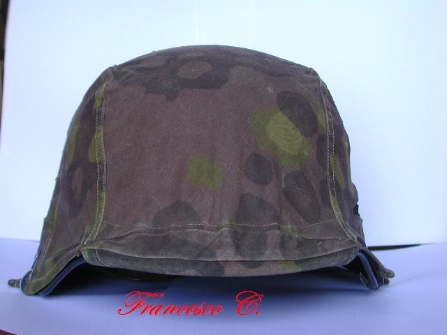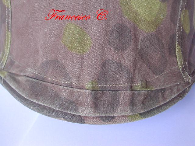 Il modello sotto raffigurato,è con mimetismo PLATANO ed è una delle primissime coperture mimetiche ,riscontrabile sia dall'assenza dei passanti ma sopratutto,a differenza dei più comuni telini,dalla particolare costruzione frontale che serviva a rinforzare la parte che viene inserita nella "visiera"dell'elmetto.