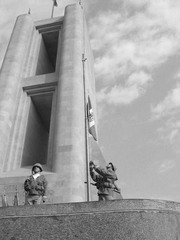 Durante la cerimonia, a due rievocatori dell'Ass. ITALIA (con la divisa del San Marco in Nord Africa, 2a G.M.), è stato dato l'onore di issare il Tricolore, al suono della fanfara dei Bersaglieri.