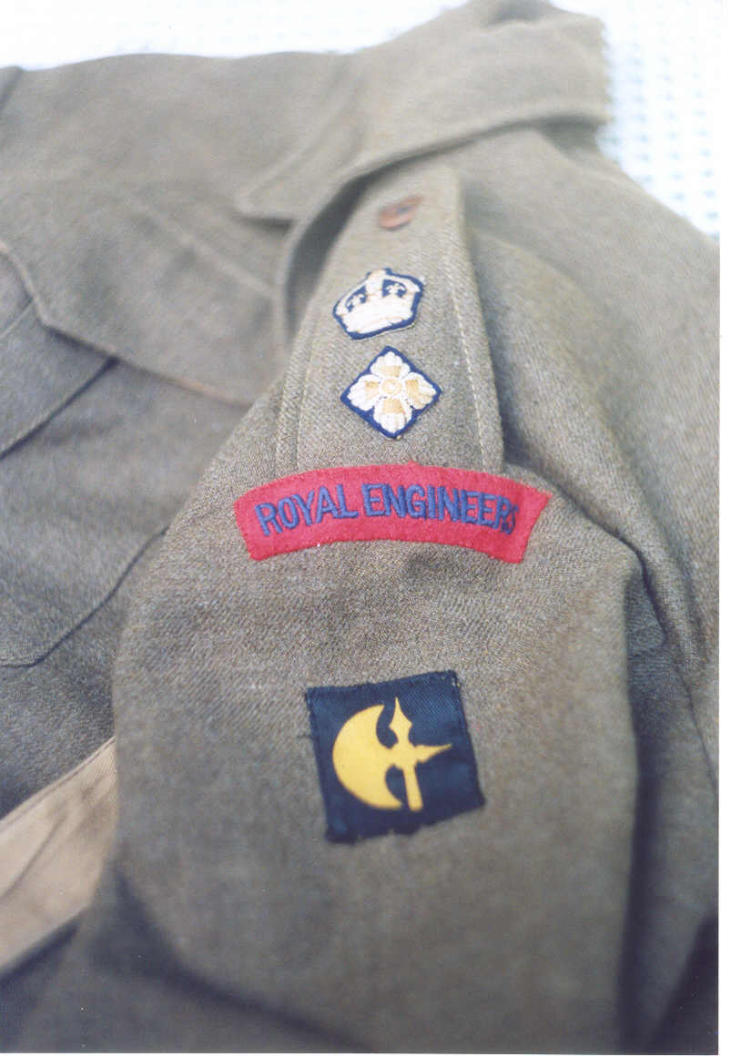 Le insegne da tenente colonnello, una King Crown da maggiore più il "pip" da sottotenente, sono sottopannate nell'arm of service colour, il blu dei Royal Engineers. I Royal Engineers svolsero un ruolo fondamentale nella campagna d'Italia, costruendo ponti, rimuovendo ostruzioni e tracciando strade, in un ambiente geografico naturalmente predisposto alla difesa.