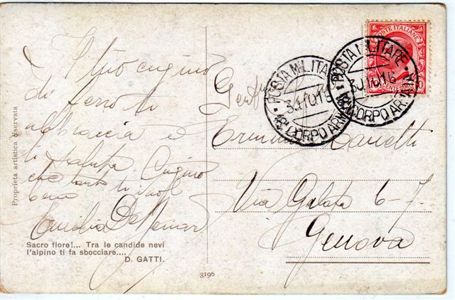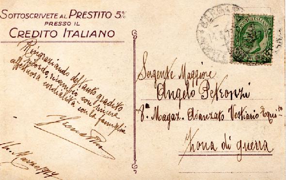 Nel testo, nella parte finale, si legge "noi pure dai bollettini vediamo che le cose si mettono bene, speriamo quindi in un non lontano termine"... ma la cartolina č datata Giugno 1916..