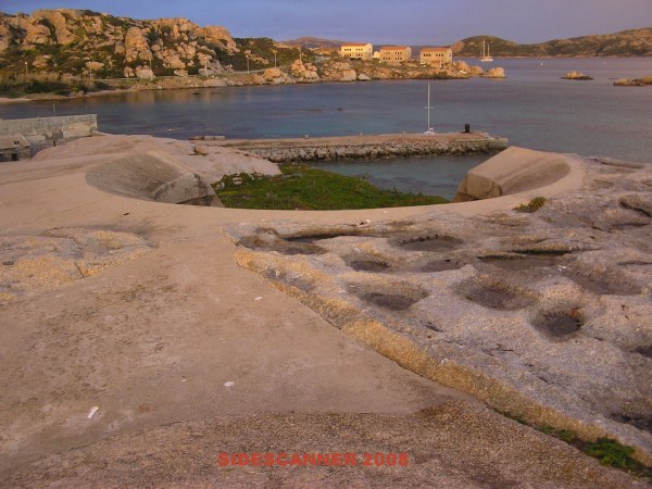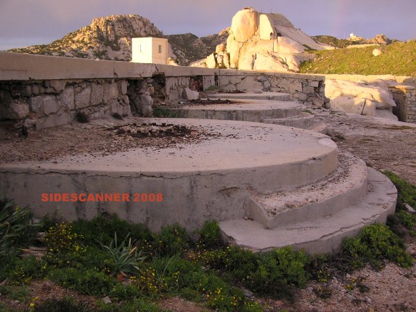 A proposito di Spargi, un'immagine dal mare della batteria Rubin Cervin, armata con 4 cannoni da 203/45.