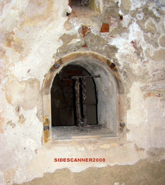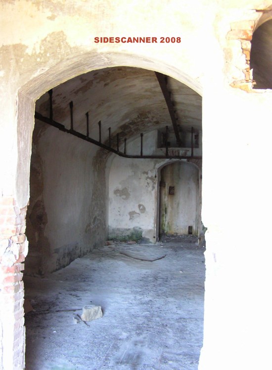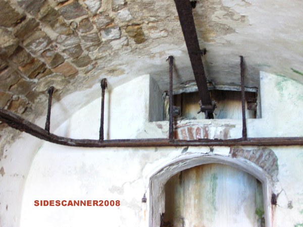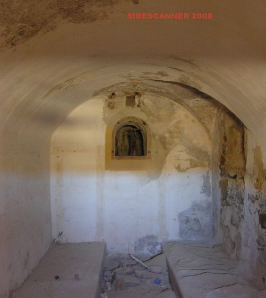 Una dei depositi armi. Credo che la ferroguida sul soffitto servisse per la movimentazione dei proietti/cariche