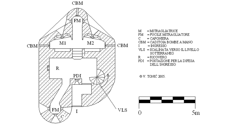 Si tratta dei bunker dei vari tipi, cio` dipende dal armamento (mitragliatrici o fucili mitragliatori), il numero delle armi (una, due o di piu`), livello di protezione (spessore frontale di calcestruzzo raramente piu` di un metro, assenza delle corazzature metalliche, forte protezione del tetto), la parte logistica (esistenza del ricovero, separato dalle postazioni)...In tutto, direi che esiste una decina dei tipi, e si vede che i loro costruttori avevano molta liberta nei dettagli non tipici, come, per esempio, il loro camuffamento...
