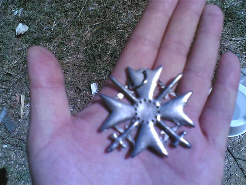 Ciao sabato ho approfittato per fare un giro nel mercato di Cassino, rovistando in una bancarelle di chincaglierie usate provenienti dal nord Europa ho trovato questa HIMALAIATA pazzesca, CROCE SPAGNOLA CON DIAMANTI, ma che roba è.... ma che schifezza, da notare il banco sulla sinistra con le cianfrusaglie ed il vasetto da notte sulla destra.